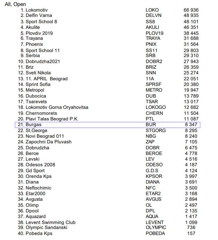 В това състезание, в което участваха 513 плувци от 49 клуба, включително и представители от Молдова и Сърбия, конкуренцията беше изключително сериозна, което направи надпреварата още по-вълнуваща. Но това само амбицира нашите 14 състезатели да покажат възможностите си.